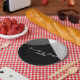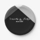 elegant and modern black and white colour block wedding reception plates. simple, chic black, white and grey abstract geometric triangles colour block pattern wedding theme.