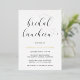 Typography Bridal Luncheon Invitation featuring the words, "bridal luncheon" in calligraphy with swashes and a heart at the end and dotting the "i". Your name is in real gold foil and your event details are in black and white. The simple and minimal layout and lots of open space give this design a modern feel and the calligraphy lettering and heart give it a romantic twist.