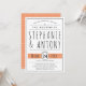 Modern black and white typography wedding invitation accented with coral peach. It features your text in black on white and the date of your wedding on a coral peach banner. The back includes a pattern with white crosses on coral peach.