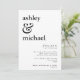An beautiful, modern black and white ampersand typography wedding invitation! A contemporary design featuring all lowercase text, in a classic serif font in black on a white background. The back of the card features a black and white watercolor texture. Sleek, elegant, modern.