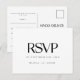 A minimal and modern black and white wedding RSVP postcard, designed with modern typography and script lettering. Customise with your names, RSVP deadline, and personalised accepts and declines wording at the back. Feel free to edit further, such as changing background colours, text colours, etc., by clicking on "personalise this design," then "edit using design tool."