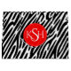 Elegant modern black and white zebra stripes seamless pattern animal print with customisable monogram and red accent.