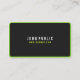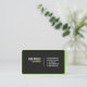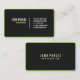 A modern black business card with a green frame or border and rounded corners. This simple but elegant business card template is two sided. The modern black business card with rounded corners is ideal for the professional businessman or woman. Black business card always get the attention of a potential client. Rounded corners and the green coloured border and text elements will add to this effect.