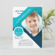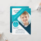 A modern photo invitation, in shades of teal and blue with a white background and a diagonal photo window. The cross can be dragged to any location, made larger or smaller or eliminated. (<a href='https://www.freepik.com/free-vector/abstract-business-cover-template-with-photo_2401392.htm'>Designed by Freepik</a>. <a href='https://www.freepik.com/free-photo/student-with-backpack-on-one-shoulder_861082.htm'>Designed by Pressfoto</a>). <br/><br/>The card is easy to customise with your wording, font, font colour and choice of six paper types.<br/><br/>Not exactly what you're looking for? All our products can be custom designed to meet your needs at no extra charge.<br/><br/>Simply contact us at askcottonlamb@gmail.com<br/><br/>Coordinating products available: