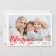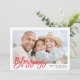 Send holiday greetings to family and friends with this Modern Blessings Script holiday photo card! The minimalist Christmas card displays your horizontal photo framed in white with "Blessings" displayed in a trendy red script. Personalize the front of the card with your name and the year. The card reverses to display a red and white snow pattern.