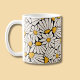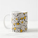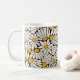 Retro floral coffee mug with cream and mustard yellow flowers set on a black background. Matching items available. Original art from artists own illustrations. Please use the message me button below for help with further customisation and special requests. © Zoe Chapman Design