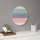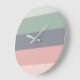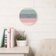 A modern wall clock block pattern design in pretty colours of green, blue and pink. A minimal style which would make a lovely addition to any kitchen, bedroom or home office.