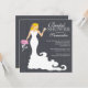 Stylish modern blonde bride wedding shower invitation features a chic modern bride toasting with a wine glass while holding a beautiful bouquet of pink wedding flowers set on a printed on paper popular black linen background with stand out white text. Our modern bride bridal shower invitation is perfect for a popular wine bridal shower celebration. Visit our shop to view this beautiful bridal shower invitation in a large selection of floral bouquet colours and different bride variations.