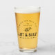 Custom wedding pint glasses make a wonderful keepsake gift for the bride and groom or personalise each one for a unique bridal party favour to give your groomsmen, bridesmaids or family members. This modern rustic logo-style design has a simple floral stem and mixed typography. Personalise the template with the bride and groom's names or monogram initials. Add your wedding date, the city, state or venue name or any other custom text. Use the design tools to choose any background colour, edit the fonts or upload your own photos to create completely custom drinking glasses to match your wedding colours and style!