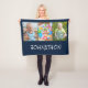 Modern blue 3 photo collage name fleece blanket. Easy to change the text and replace the photos with your own.