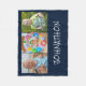Modern Blue 3 Photo Collage Name Fleece Blanket