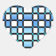 Trendy heart shaped square chequered tiled pattern stickers with modern black, white, and blue gradient tiles, giving it a stained glass effect.