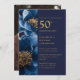 Modern Blue And Gold Floral 50th Anniversary Photo Invitation