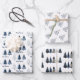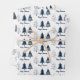 Modern Blue and Gold Merry Christmas Trees Wrapping Paper Sheet