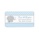Elephant address labels feature an adorable little newborn baby elephant calf with heart shaped splashes and a polka dot and diagonal stripes patterned background. Modern grey, light powder blue, and white colour scheme. Personalise the design template with your return address. Use "Customise it" to edit the text size or colour.