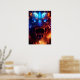 Modern Blue And Red Glowing Fantasy Dragon Graphic Poster