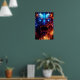 Modern Blue And Red Glowing Fantasy Dragon Graphic Wall Poster