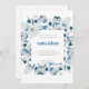 Modern Blue and White Floral Framed White Wedding Invitation