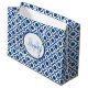Modern Blue and White Geometric Monogram With Name Large Gift Bag