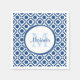 Modern Blue and White Geometric Monogram With Name Napkin