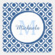 Modern Blue and White Geometric Monogram With Name Square Sticker