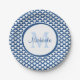 Modern Blue and White Scallops Monogram and Name Paper Plate