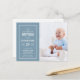 Affordable custom printed baby boy Baptism postcard invitations. This classic design features a modern typography layout next to your child's photo. Keep the sweet blue background or use the design tools to choose any background colour and edit the fonts to suit your style. Personalise the design with your child's Baptism party details. Have fun creating your own unique Christening invitation for your baby boy.