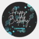 Modern Blue Bokeh Gradient Black Happy Birthday Classic Round Sticker