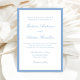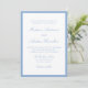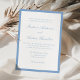 Set a fresh, airy tone for your wedding with this light blue invitation, framed by a soft blue border that brings a calm and refined feel to the design. The couple’s names are displayed in graceful calligraphy, with the wedding details presented below in clean serif lettering for a balanced, timeless layout. The gentle color palette and classic typography make this invitation a beautiful choice for coastal venues, summer celebrations, and elegant ceremonies.