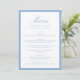 This wedding menu features “Menu” in soft light blue calligraphy, paired with classic serif lettering for the couple’s details and dining selections. A pale blue border frames the design with an airy, graceful look that feels perfect for spring, summer, and coastal celebrations. The clean layout keeps the focus on the menu while adding a subtle touch of color to your table setting.