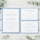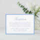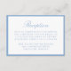 This reception enclosure card features “Reception” in elegant light blue calligraphy with classic serif lettering for your reception details below. A soft blue border frames the card, creating an airy, refined look that feels clean and timeless. The balanced layout offers a graceful way to present your reception information, making this enclosure well-suited for summer weddings, coastal venues, and classic celebrations.