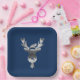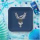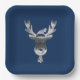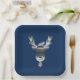 Modern Blue Christmas Faux Silver Reindeer Paper Plate