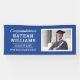 Simple and stylish custom "Congratulations" graduation banner sign features a senior photo of the graduate with modern and masculine text that can be personalised with the grad's name, school, and class year. Note, the royal blue and white text can be modified to coordinate with school or party colours.