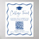 Add a stylish touch to your graduation party with this Modern College Fund graduation QR code sign. The design features an illustration of a graduation cap at the top, with "College Fund" in eye-catching blue handwritten script, framed by a blue wavy border. Personalise this graduation poster with your custom text and a link to your preferred payment service, making it easy for guests to contribute. Perfect for displaying at your high school graduation party, this unique sign will enhance the celebration and keep your college fund contributions organised!