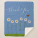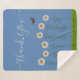 Modern Blue Daisy Floral Thank You Typography Sherpa Blanket