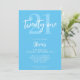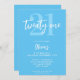 A simple modern 21st birthday invitation featuring elegant calligraphy script typography and minimalist design in blue and white colour.