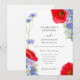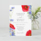 Beautiful elegant hand painted watercolor botanical summer wildflowers in cornflower blue, purple, pink, red, green and yellow hues wedding invitation. Flowers including cosmos, cornflowers, daisies, poppies and forget me nots with foliage. Easy to use template with modern elegant typography script. Perfect for a unique flower botanical blue purple themed summer or spring wedding. Unique original artwork by artist Catherine Sweetman