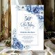 Modern Blue Floral 50th Birthday Party Invitation