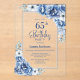 Modern Blue Floral 65th Birthday Party Acrylic Invitations