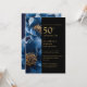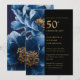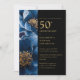 Modern Blue Floral Black And Gold 50th Anniversary Invitation