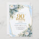 Modern Blue Floral Gold Frame 90th Birthday Invite