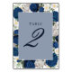 Modern Blue Floral Watercolor Elegant Wedding Table Number