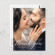 Express your gratitude in style with these Elegant Floral Photo Wedding Thank You Cards featuring a personalised photo and chic calligraphy. Decorated with white and navy blue, royal blue watercolor roses, the floral details add a touch of sophistication to the postcard side. Perfect for newlyweds, these stylish cards beautifully combine elegance and personalisation to cherish your special day.