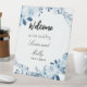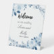 Modern Blue French Floral Wedding Pedestal Sign, minimalist style which can be easily updated with your photo and text. If you need any help personalising this product. Please contact me using this message button below and I will be happy to help.