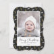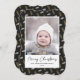 Send customisable and personalised holiday greetings to friends, colleagues and family in simple, minimalist, elegant, fun, festive and modern photo cards! A beautiful frame of variety of gold and white Christmas Pine Tree Acorns on black background surrounds your photo on bracket shape paper. The greeting " Merry Christmas " is written in elegant calligraphy, and below features your custom greeting message from your family name in modern typography. Reverse to reveal a beautiful the full Christmas Pine Tree Acorns pattern background.