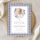 Modern Blue Gingham Photo Boy Baptism Invitation