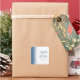 This elegant modern wedding sticker features a blue faux glitter design on the left edge. Easily customise the blue text on a white background, with the names of the bride and groom in handwriting calligraphy over a large ampersand.