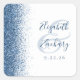 Modern Blue Glitter Edge White Wedding Square Sticker