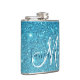 Modern Blue Glitter Sparkles Personalised Name Hip Flask