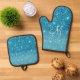 Modern Blue Glitter Sparkles Personalised Name Oven Mitt & Pot Holder Set
